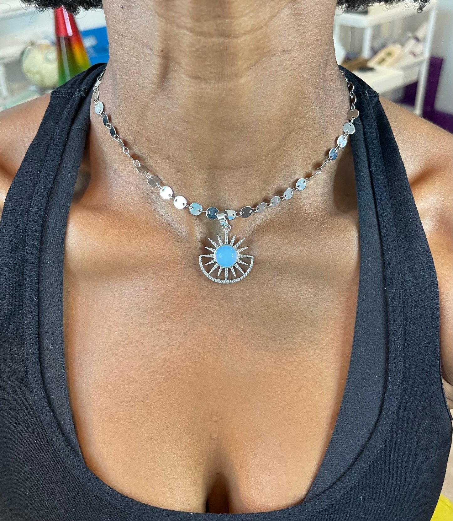 Cool and stylish, this 15" Starseed Opalite Choker is made with a silver chain and an opalite charm! Designed to grant you optimism and peace. A powerful spiritual stone, opalite is renowned for its ability to help stay youthful and playful.